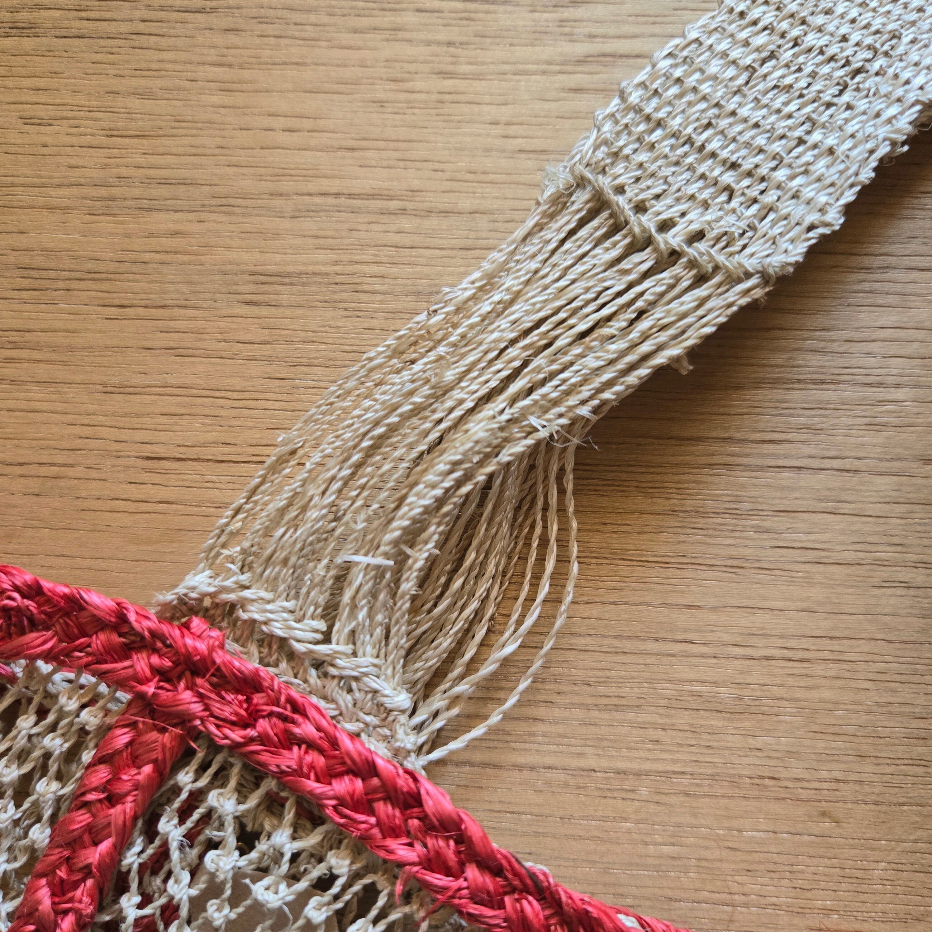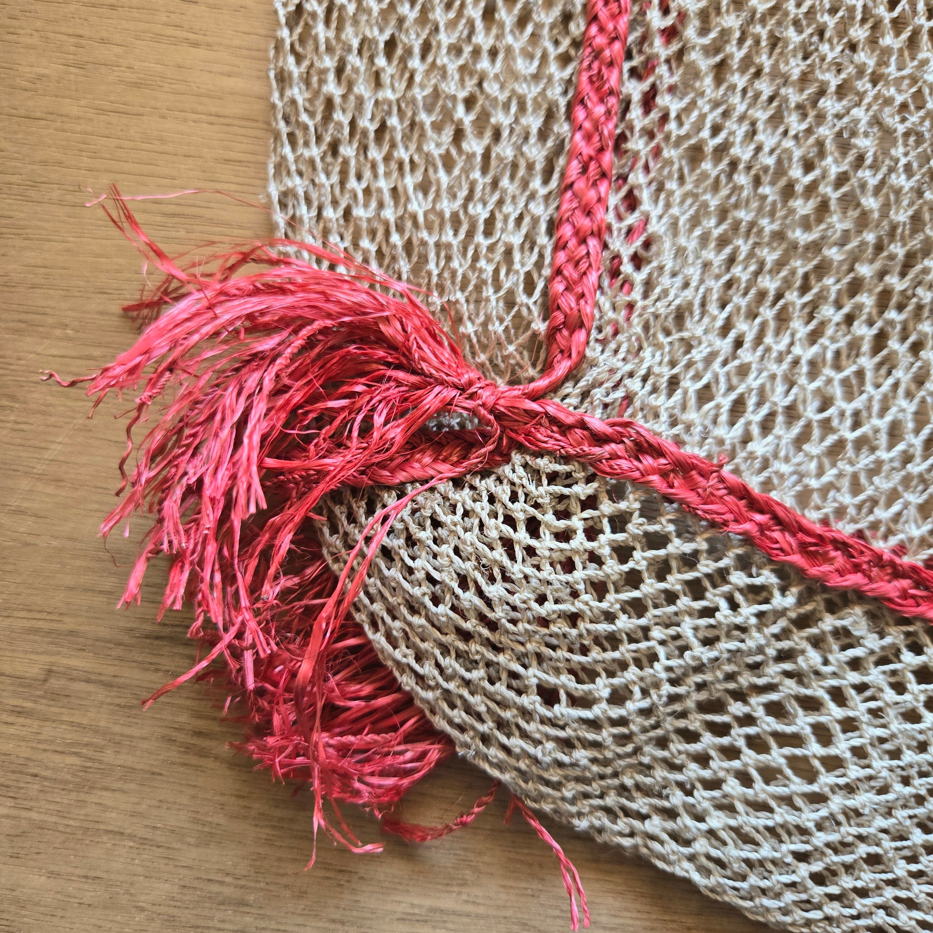 植物の繊維から作られた糸を使い、ひとつひとつ丁寧に編まれています。