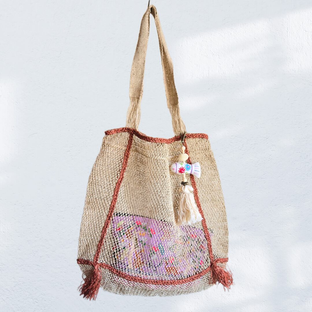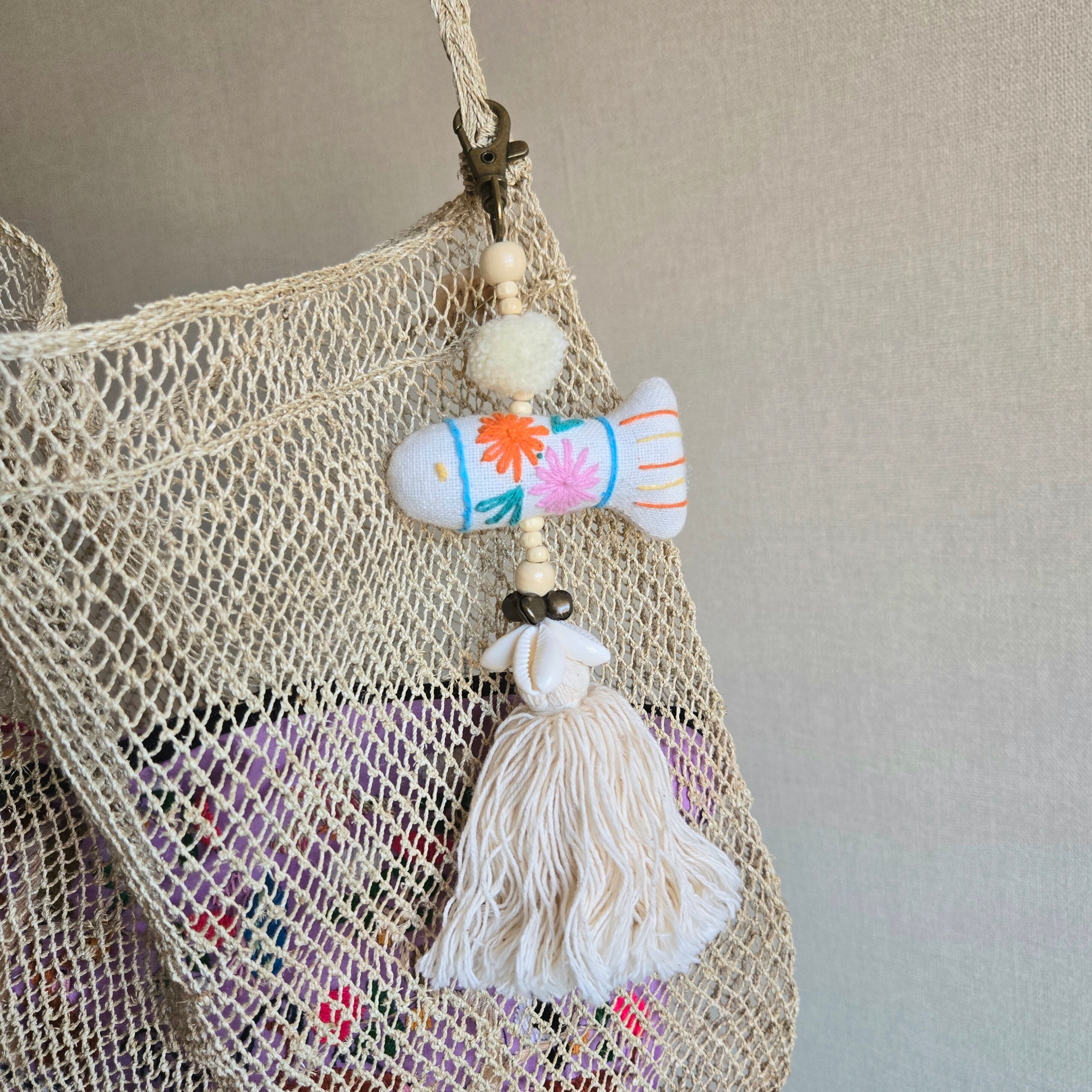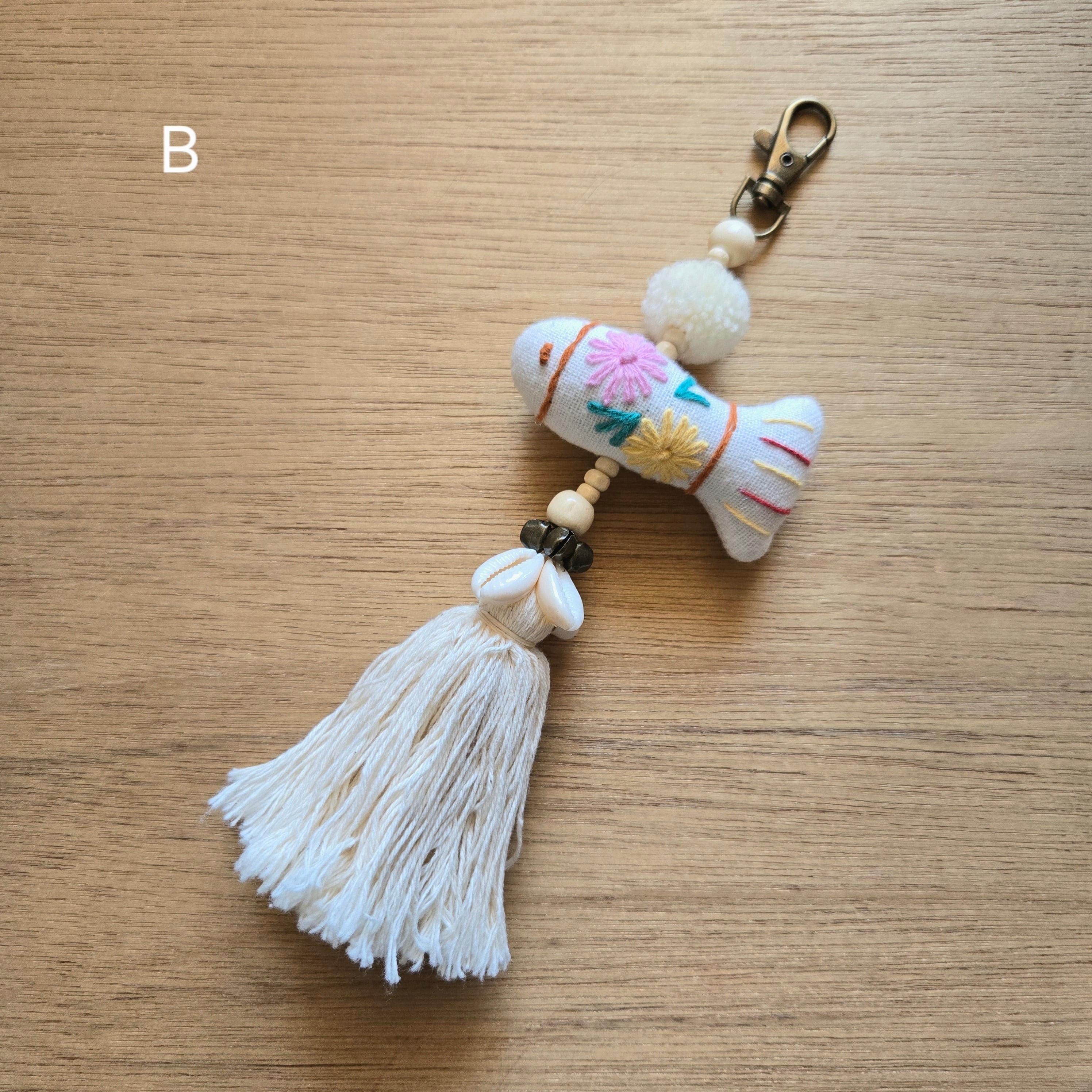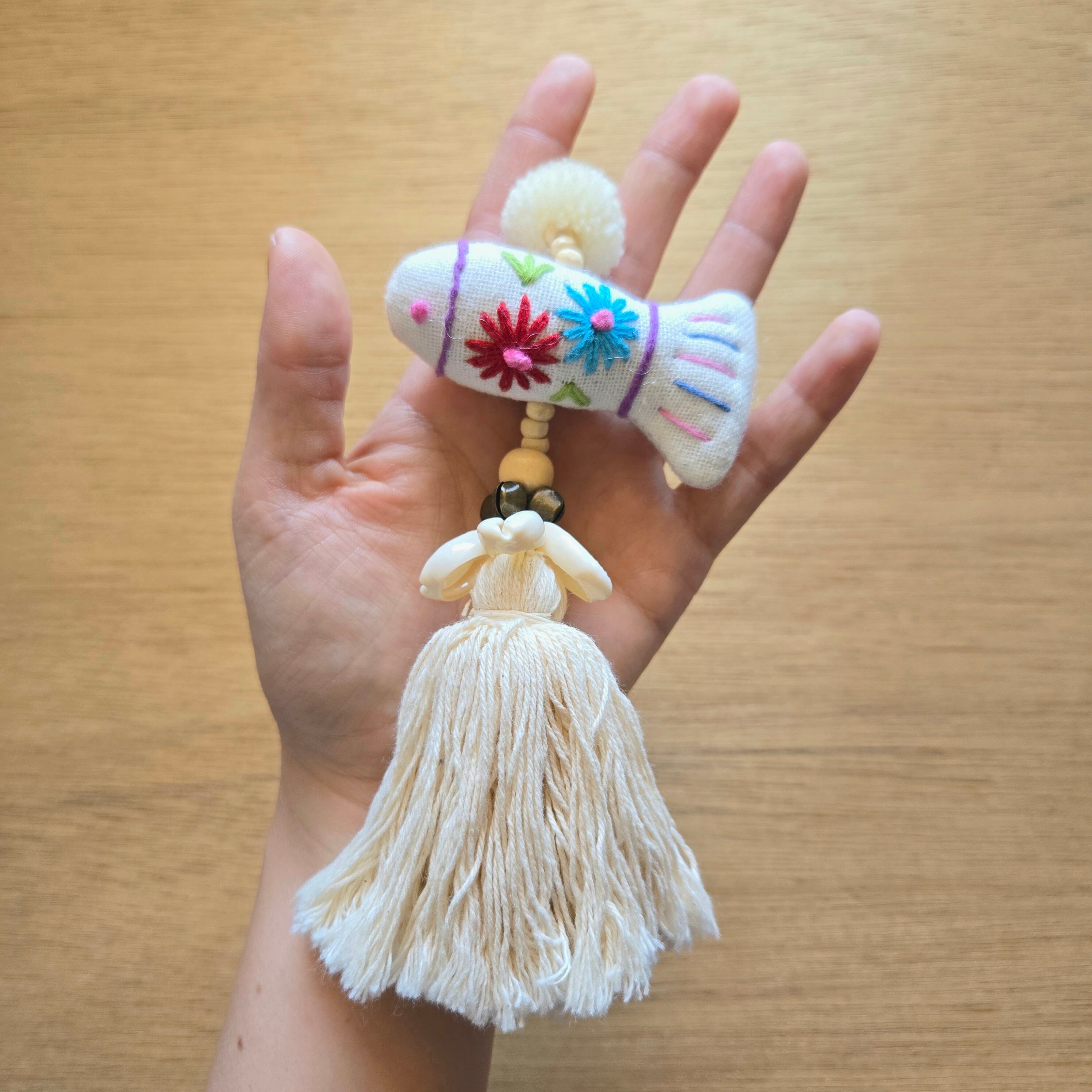 ラオス 手刺繍おさかな鈴付きチャーム