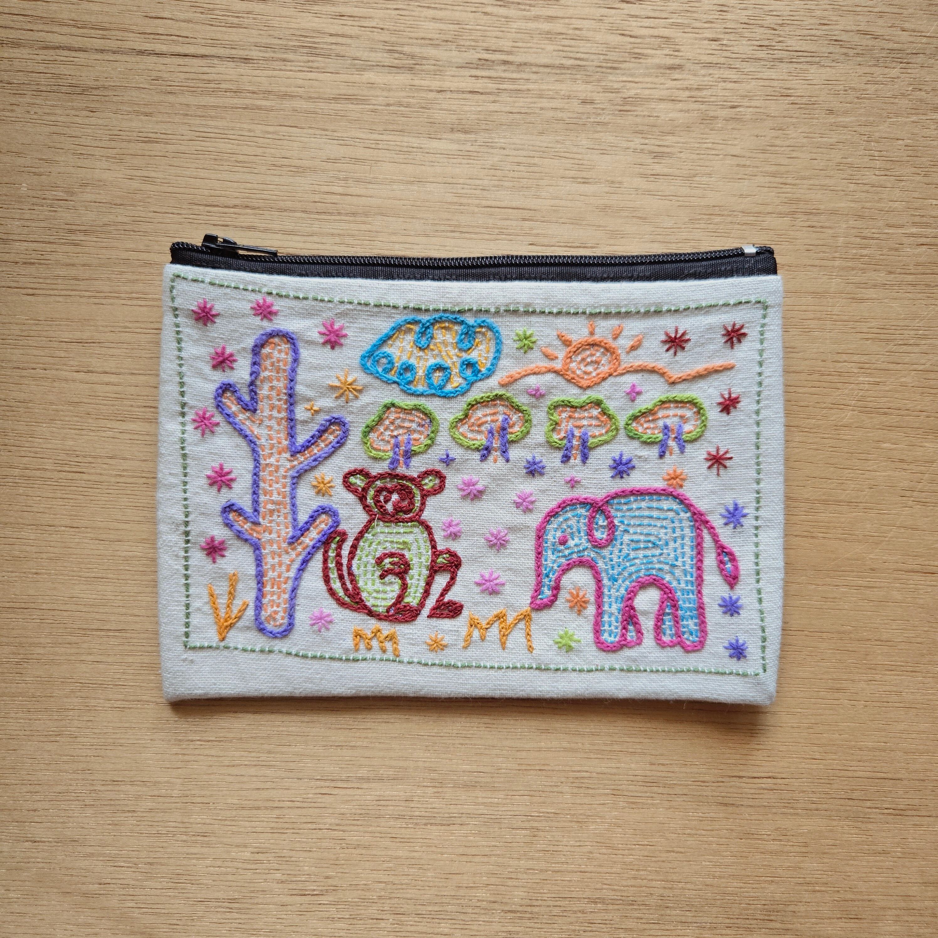ラオスからやってきたレンテン族の手刺繍入りポーチ。