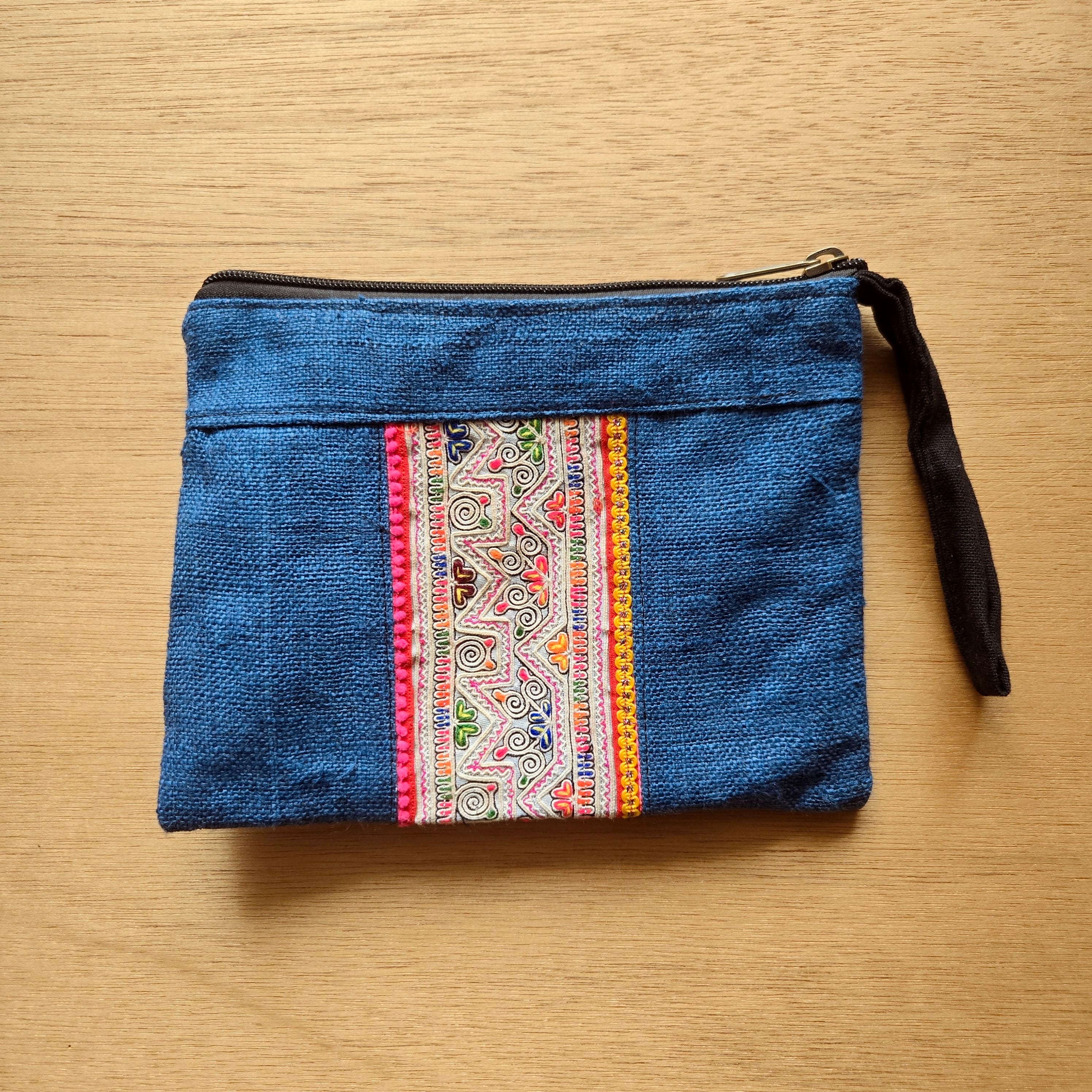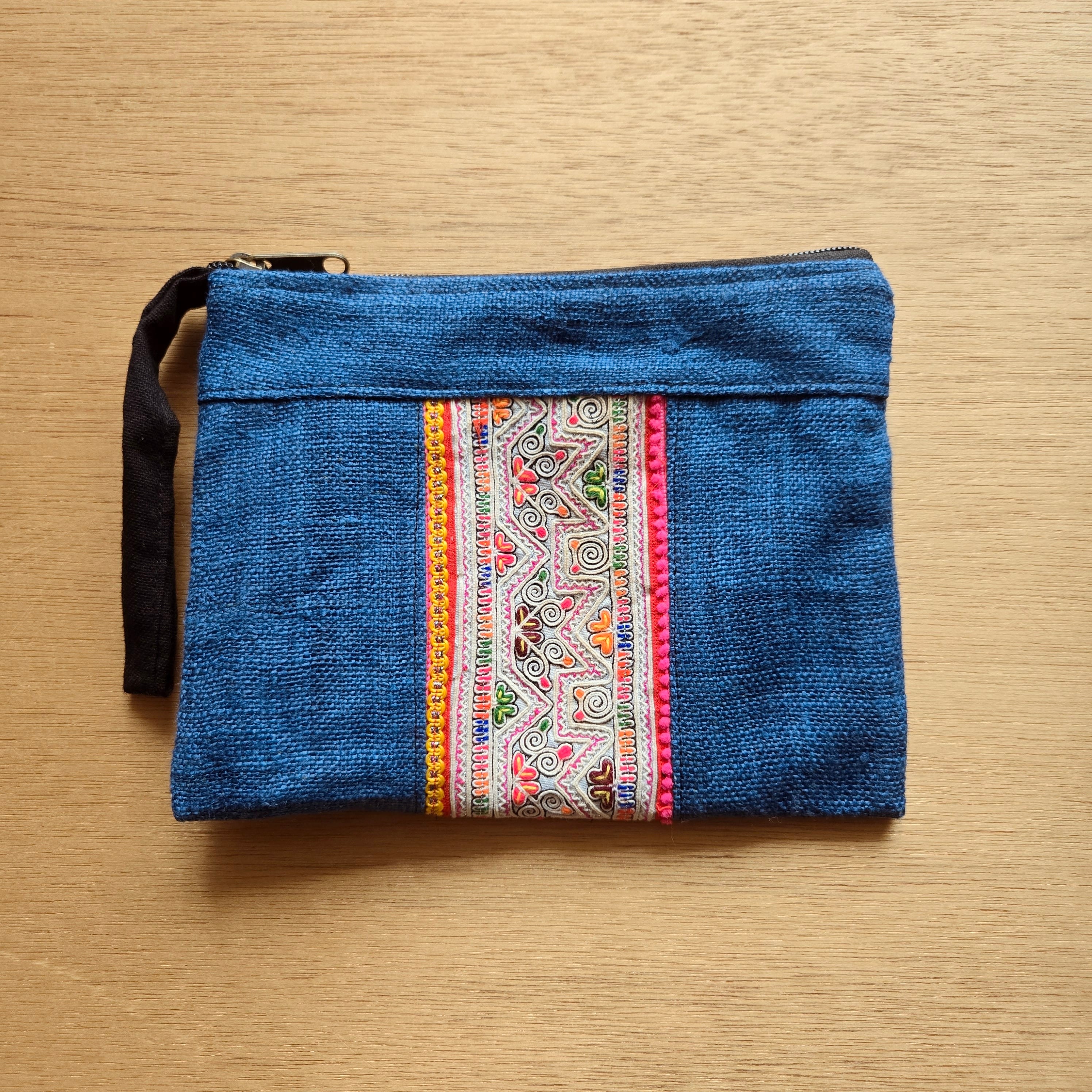 タイ北部の山岳地域に住む少数民族モン族のヴィンテージ民族衣装をアップサイクルしたフラットタイプのポーチです。