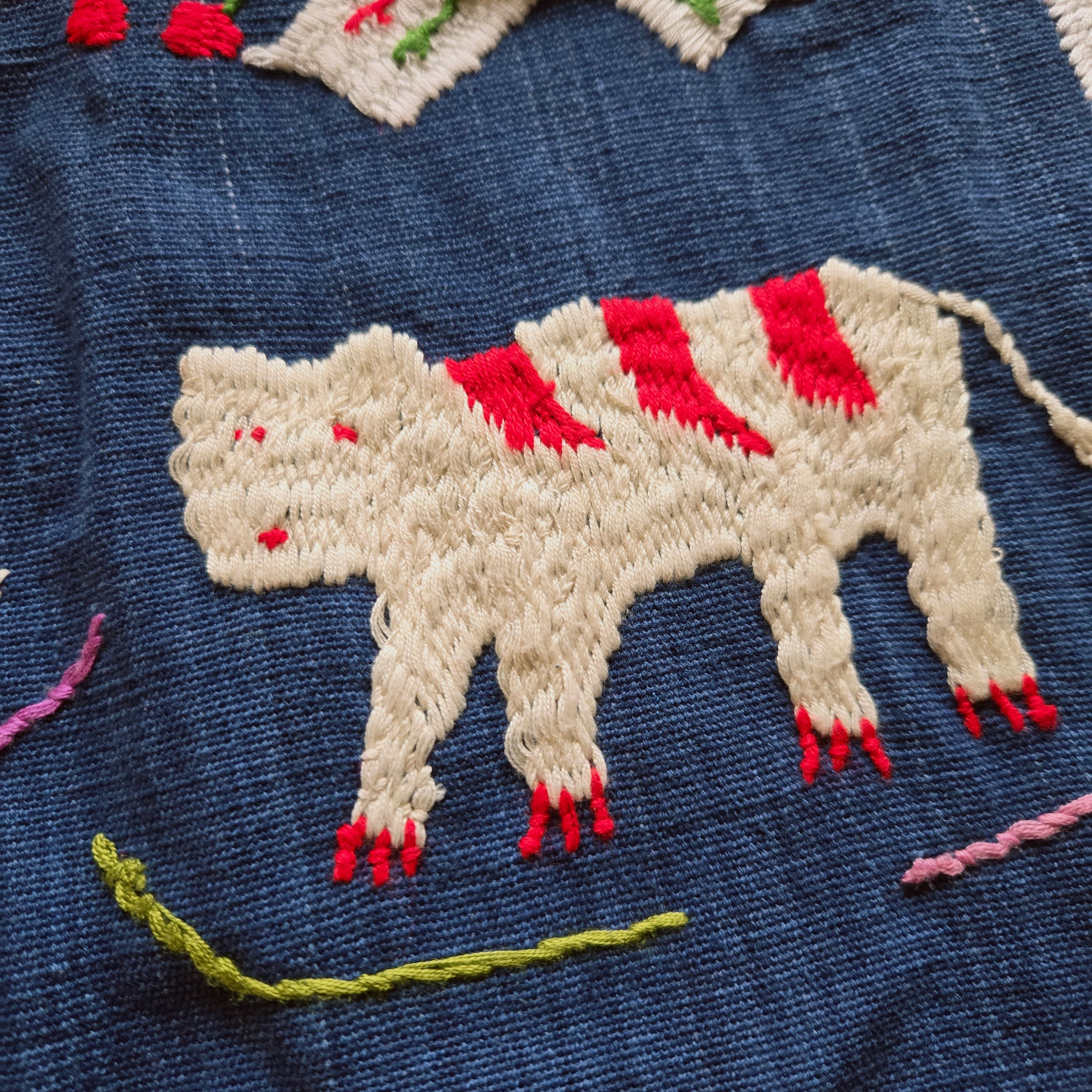 ナガ族刺繍の可愛らしさが詰め込まれた作品です。