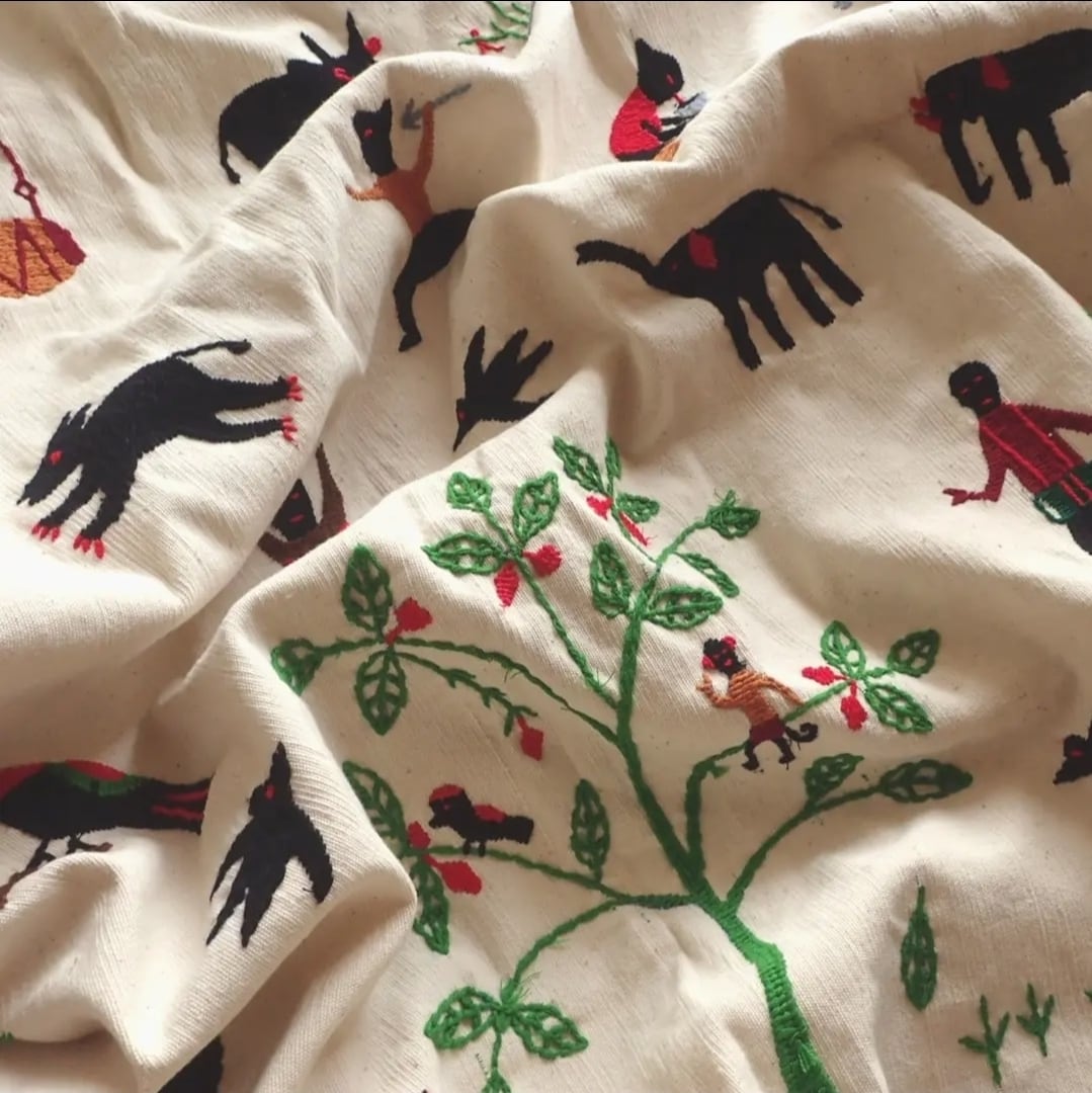 手織り手刺繍で作られています。